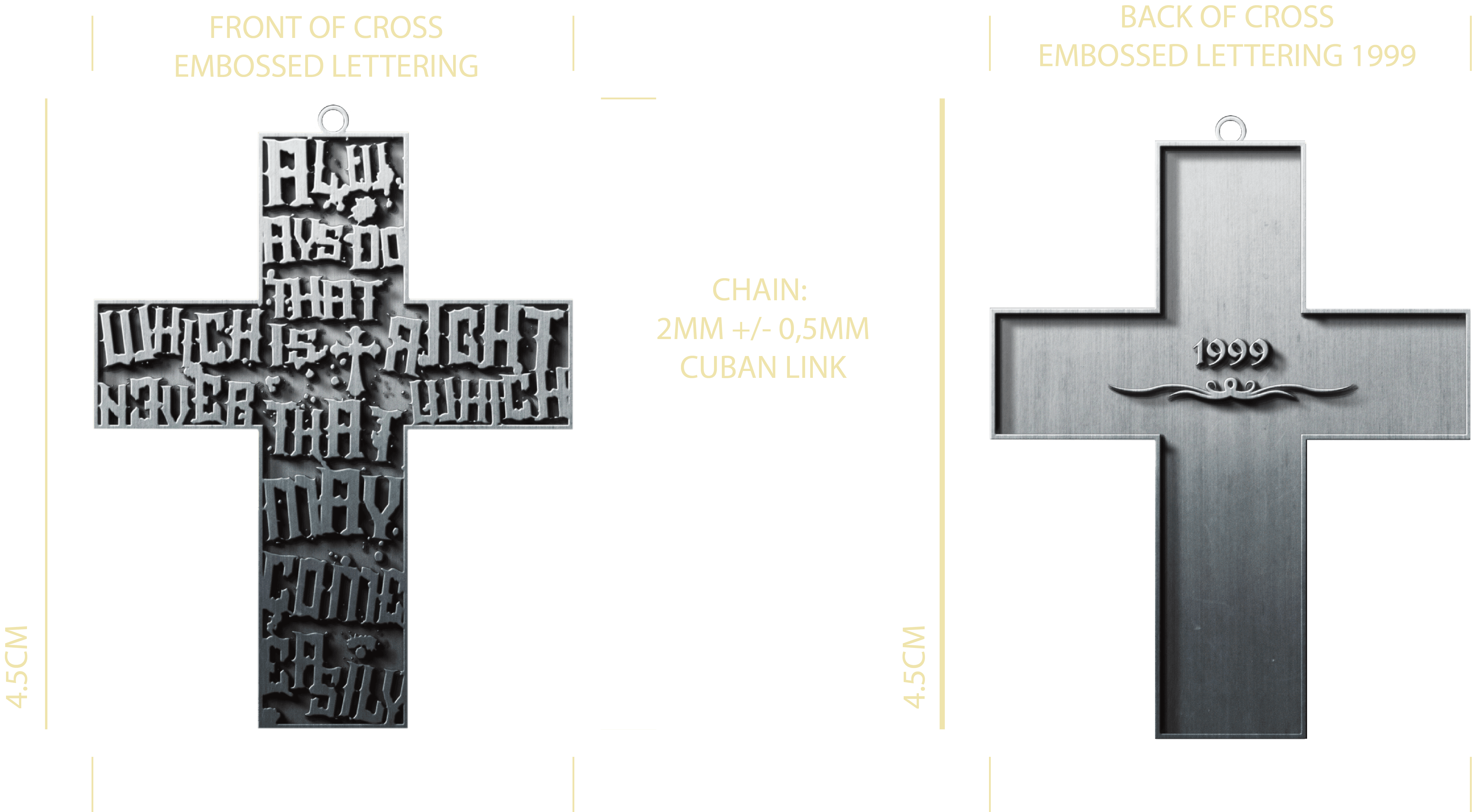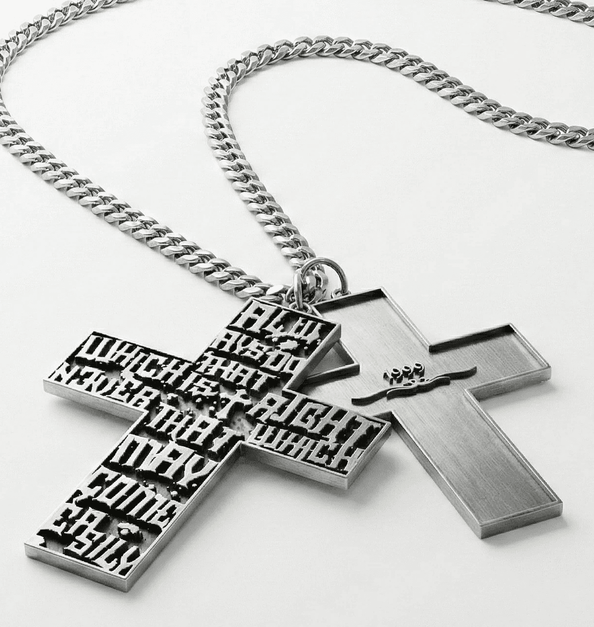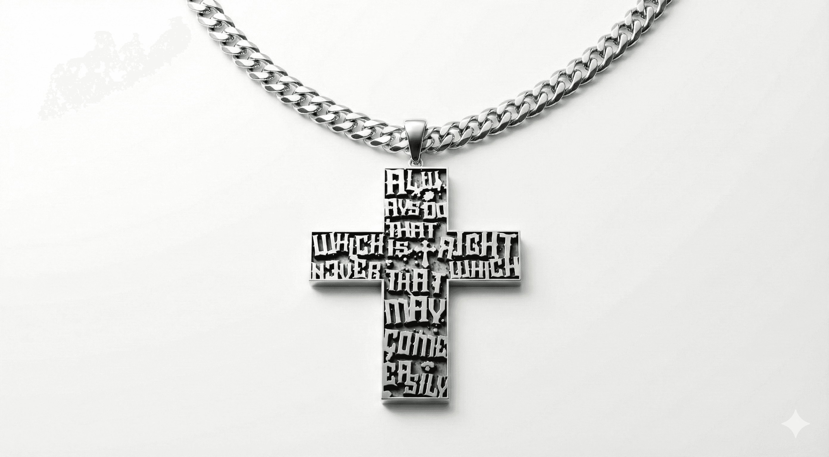 Necklace with typographic cross pendant "Always do that which is right never that which may come easily"